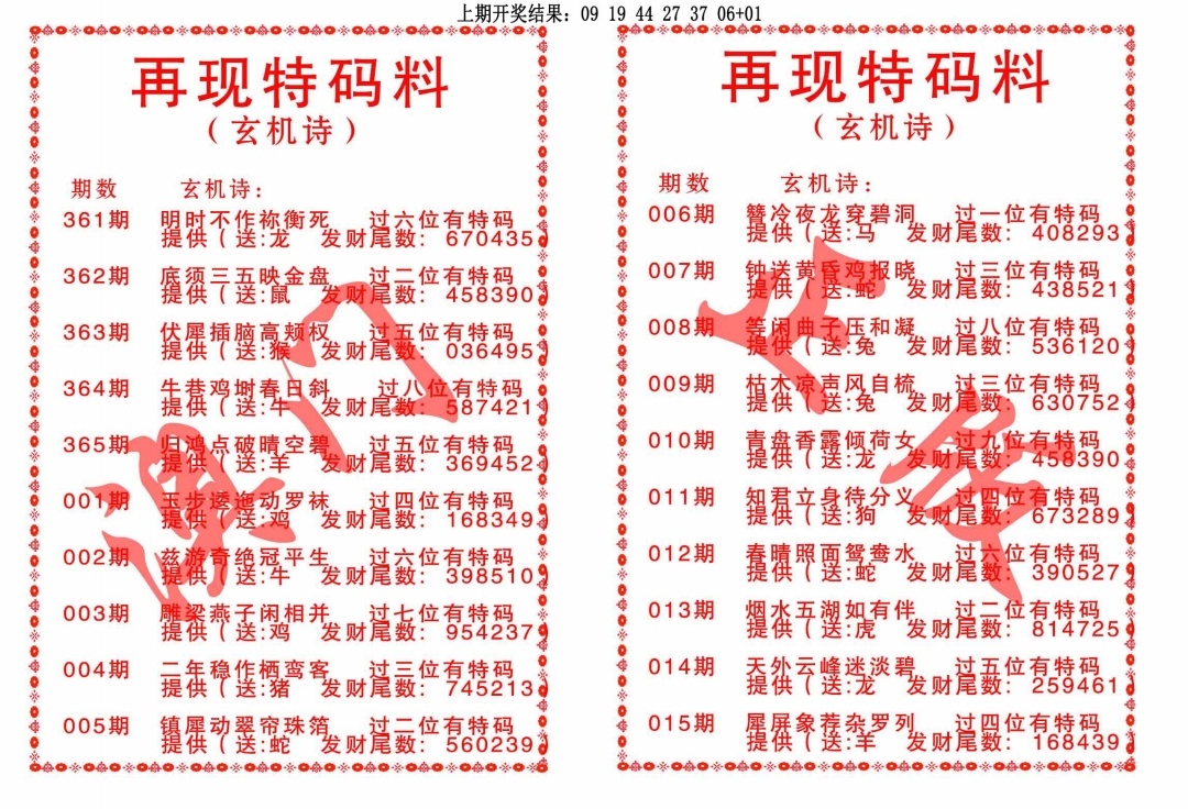 再现特码料
